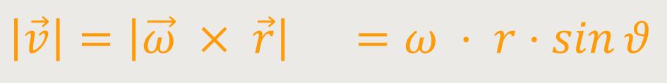 Also, mit mithilfe der Winkelgeschwindigkeit kann man bei bekanntem Kreisradius die Bahngeschwindigkeit, das heißt den Betrag der Geschwindigkeit des Massenpunktes ausrechnen. Nun lässt sich ein Bezug mit der vektoriellen Darstellung der Winkelgeschwindigkeit herstellen. Und zwar, wenn man das Ganze vektoriell schreibt. Dann erhält man ein vektorielles (Kreuz)Produkt: