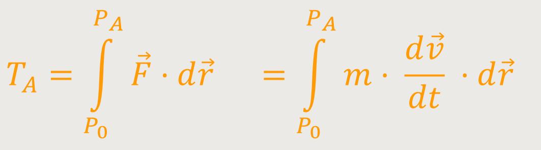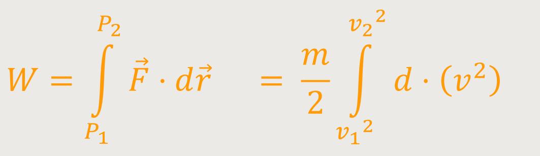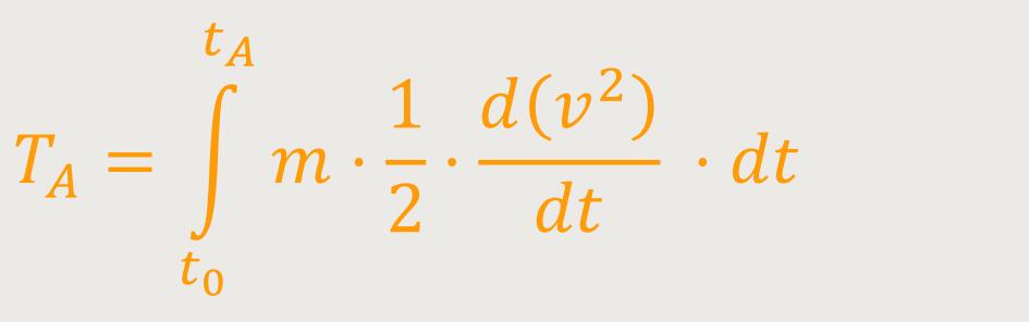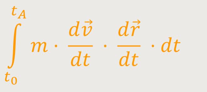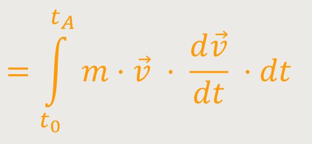 Die Arbeit lässt sich somit ausrechnen als die Differenz der kinetischen Energien. Gemessen vom Endpunkt „minus” dem Anfangspunkt: