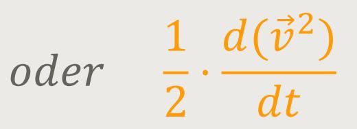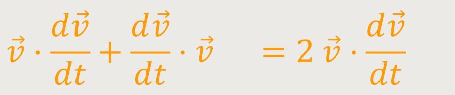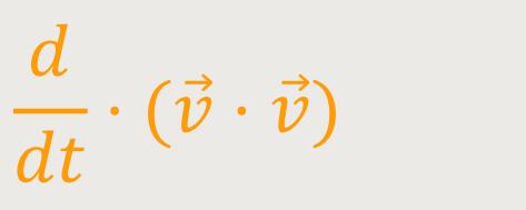 Hier wird der Geschwindigkeitsvektor (als Skalar) mit sich selbst multipliziert. Unter Berücksichtigung der Produktregel ergibt sich daraus: