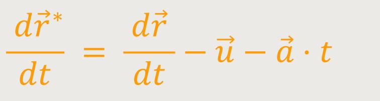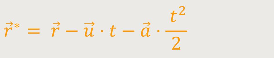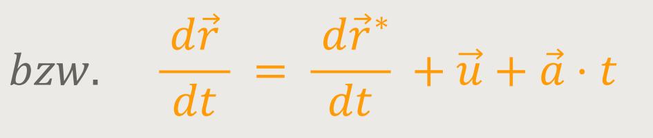 Wenn man jetzt obige Beziehung zugrunde legt, und das Argument für den Ortsvektor einsetzt, ergibt sich für das gleichförmig beschleunigte Bezugssystem: