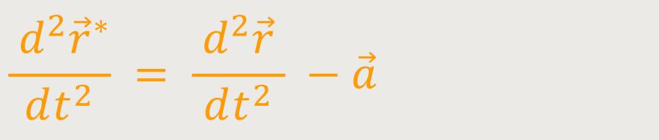 Wenn man das physikalisch interpretiert sieht man, dass die Beschleunigungen jetzt nicht mehr gleich sind. Daraus folgt, dass ein „beschleunigtes” System kein Inertialsystem mehr ist.