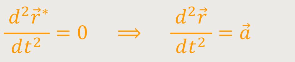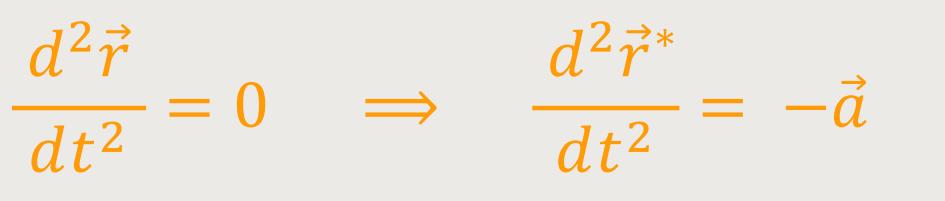 Im zweiten Fall, ist der Massenpunkt P unbeschleunigt im System S∗. Also gegenüber dembeschleunigten Bezugssystem soll der Massenpunkt unbeschleunigt sein, woraus folgt: