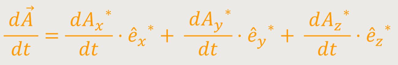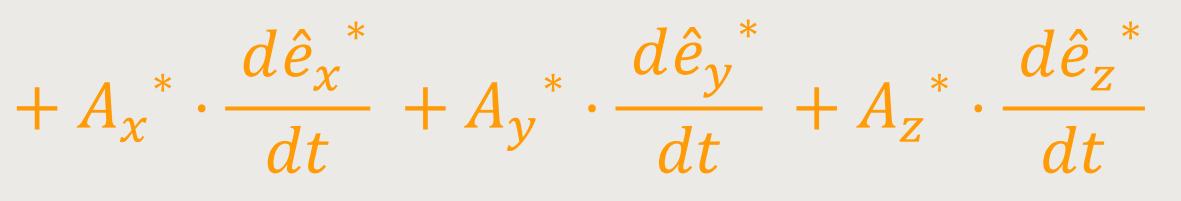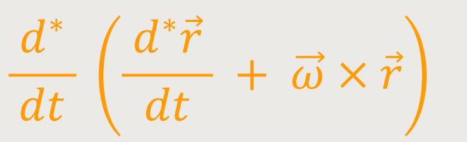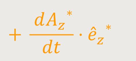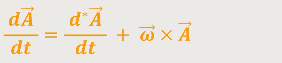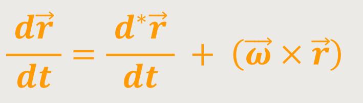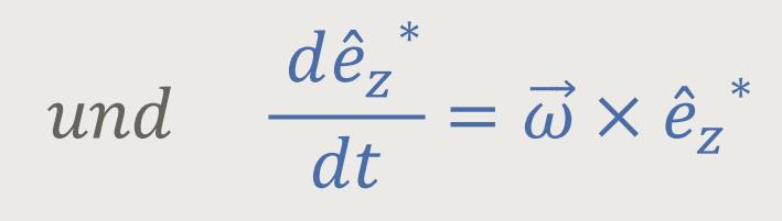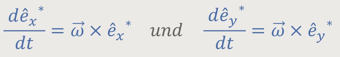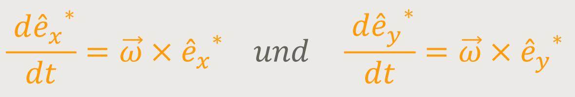 Jetzt betrachten wir die zeitliche Änderung der Basisvektoren des rotierenden Systems relativ zu dem ruhenden Inertialsystem. Ganz analog erhält man für die drei Basisvektoren durch Gleichsetzung: