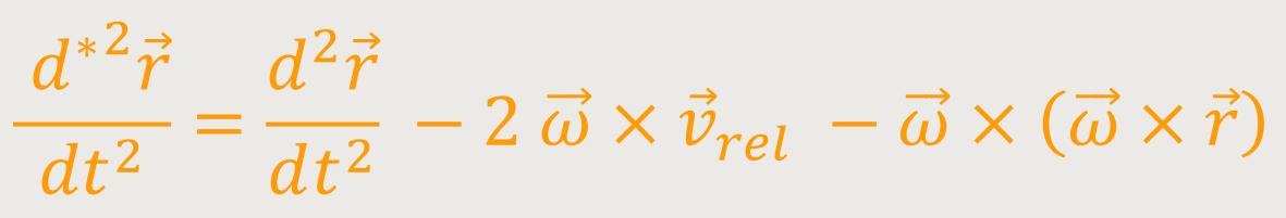 Daraus kann man erkennen, dass in rotierenden Bezugssystemen gleich zwei Trägheitskräfte auftreten.