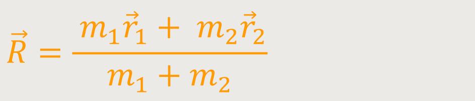 Die bisher betrachtete Darstellung ist allerdings nicht besonders günstig, weil sich beide Massenpunkte in Bewegung befinden. Günstiger wäre es, wenn man hierbei ein sogenanntes Zweikörperproblem betrachten könnte, und man sich als Beobachter in einem Bewegungszustand befindet, wo der Massenmittelpunkt in Ruhe ist. Um das zu erreichen, muss man wieder in ein anderes Bezugssystem transformieren.