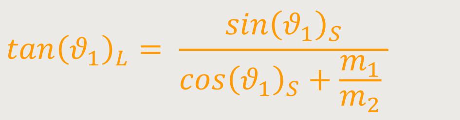 Der Streuwinkel im Schwerpunktsystem ist immer ≥ dem Winkel im Laborsystem, weil das Target-Teilchen im Laborsystem ruht. Betrachtet man aber den gleichen Vorgang aus Sicht des Schwerpunktsystem, bewegen sich die Teilchen bereits verlangsamt, und wenn ihnen dann noch etwas entgegen fliegt, werden sie stärker abgelenkt und damit ist der Streuwinkel Θ immer ≥ gegenüber dem Streuwinkel ϑ₁ .