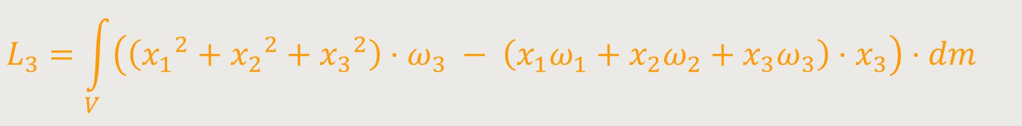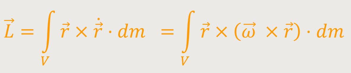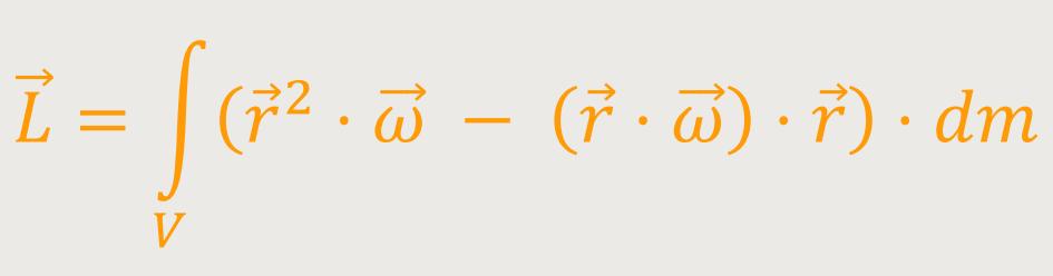 Der Gesamtdrehimpuls ist jetzt die Summe über die Einzeldrehimpulse aller Massenelemente dm aus denen der ganze starre Körper besteht. Hierzu integriert man über das gesamte Volumen: