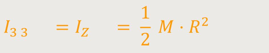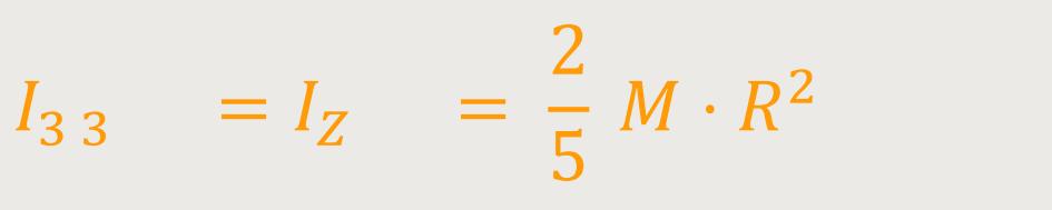 Oder bei einer homogenen Kugel, die um eine Achse rotiert, die durch den Mittelpunkt der Kugel geht, ergibt sich: