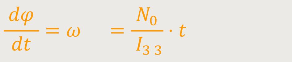 Man sieht sofort, dass die Winkelgeschwindigkeit mit der Zeit zunimmt. Genauso, wie bei der gleichförmigen Translationsbewegung die Geschwindigkeit mit der Zeit zunimmt. Und wenn man das jetzt noch einmal nach der Zeit integriert, erhält man: