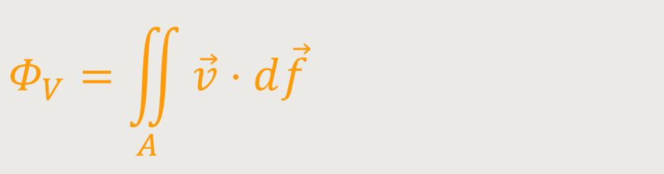 Man kann davon ausgehen, dass mit einer Flüssigkeitsströmung oder Gasströmung etwas transportiert wird. Wir transportieren in diesem Fall ein Volumen eines Fluids oder anders ausgedrückt eine Masse. Auf diese Weise kann man ermitteln, welches Volumen dieses Fluids pro Zeiteinheit durch eine bestimmte Querschnittsfläche A in der jeweiligen Strömung hindurch treten wird. Das nennt man dann den „Volumenfluss”. Und das ist wiederum nichts anderes als ein Flächenintegral: