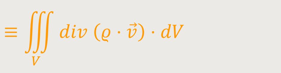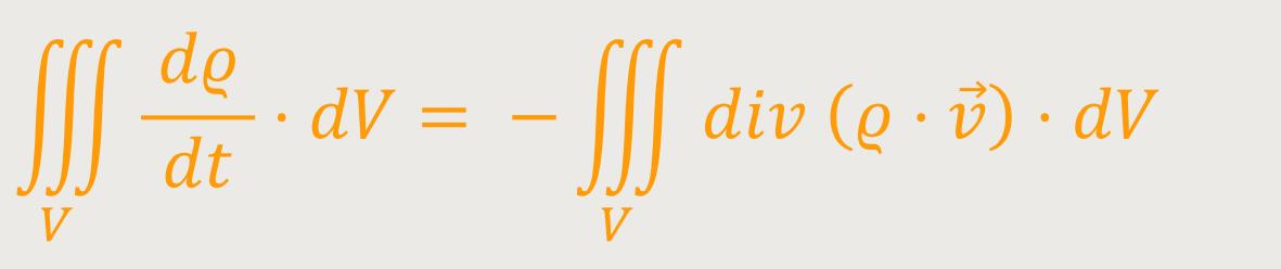 Wir betrachten hier die Masse, die pro Zeiteinheit aus dem Volumen herausfließt, umgeformt mithilfe des Gauß'schen Integralsatzes. Was lässt sich daraus schlussfolgern?