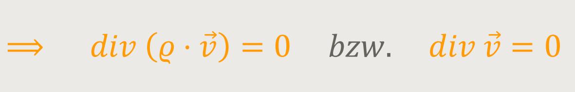 Wenn es sich um inkompressible Fluide handelt, kann man sofort erkennen, dass sich die Dichte nicht ändert. Daraus ergibt sich: