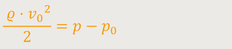 Was für eine Konstante das ist, ist gar nicht so wichtig, so lange sich der Strömungsbereich konstant verhält. Dann müssen nur die Bedingungen beim Beobachtungspunkt B und beim Staupunkt S betrachtet werden, und die Summe der Energie muss die gleiche bleiben. Laut Bernulli erhalten wir dann: