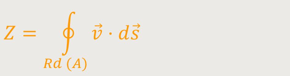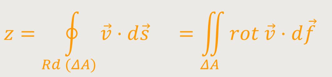 Hierzu definieren wir uns die Zirkulation längs einer geschlossenen Kurve. Wobei diese geschlossene Kurve immer aufgefasst werden kann als die Randkurve einer Fläche. Es ergibt sich daraus für die Zirkulation: