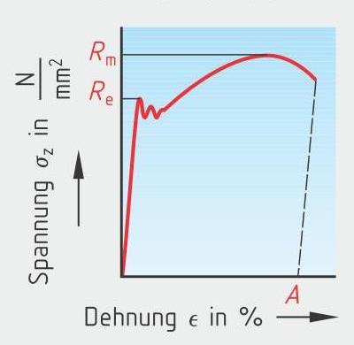 Abb. 1: Spannung-Dehnungsdiagramm „mit” ausgepägter Streckgrenze