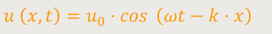 Die Auslenkung hat zum einen eine Zeitabhängigkeit (seitlich) aber auch eine Ortsabhängigkeit (in Laufrichtung). Beide Abhängigkeiten sind harmonische Abhängigkeiten, was man am Kosinus (Cosinus) erkennen kann. Wie kann man sich vorstellen?