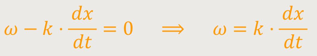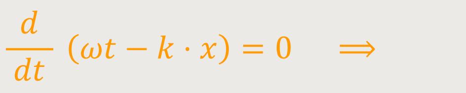 Wenn man jetzt die Gleichung der Phasengeschwindigkeit entsprechend umformt, dann folgt daraus: