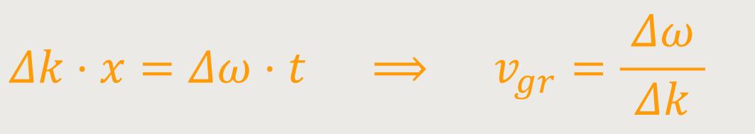 Also, falls Dispersion vorliegt, unterscheidet sich die Gruppengeschwindigkeit von der Phasengeschwindigkeit.
