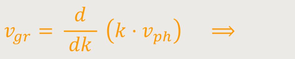 Wenn man das in der Gleichung für die Gruppengeschwindigkeit einsetzt, ergibt sich:
