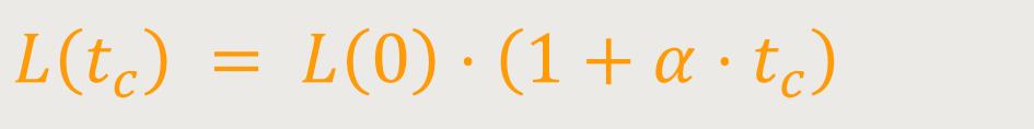 Bei Temperaturveränderungen ändert sich nämlich auch die Länge eines Körpers. Und so lässt sich die Länge bei einer bestimmten Temperatur wie folgt beschreiben: