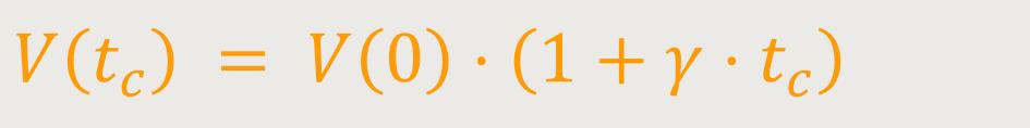 Alternativ dazu gibt es auch die Möglichkeit, eine Volumenänderung, beispielsweise von einer Flüssigkeit, zu betrachten. Das Volumen bei einer bestimmten Temperatur tc verhält sich dann ähnlich: