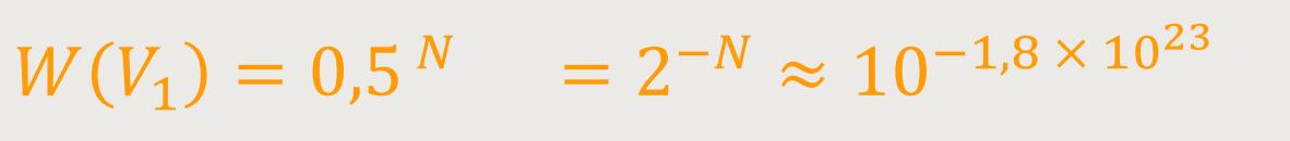Die Wahrscheinlichkeit ist so gering, dass sich alle Moleküle nur im Volumen V₁ befinden, dass dieser Zustand praktisch nie eintreffen wird.