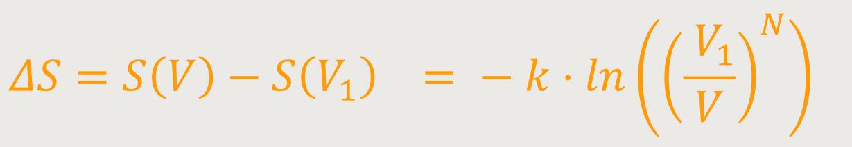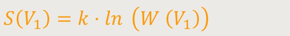 Mit W wird die Wahrscheinlichkeit für das Volumen V bezeichnet. Und zwar mit welcher Wahrscheinlichkeit sich das Molekül im Volumen V befindet bzw. im Volumen V₁. Die Moleküle können sich frei in beiden Kammern bewegen. Die statistische Interpretation ist im Grunde etwas ganz Einfaches.