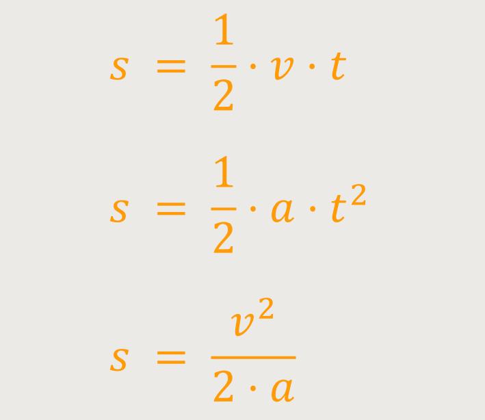 Techn. Physik ⇦ Übersicht ⇦ Zurück 3.1 Bewegung (gleichförmig) 3.2 Bewegung (gleichf. beschleunigt) 3.3 Drehimpuls 3.4 Kräfte und Drehmoment 3.5 Arbeit 3.6 Energie 3.7 Leistung 3.8 Reibung 3.9 Druckarten 3.10 Pneumatik Weiter ⇨ Gleichförmig beschleunigte Bewegung ⇨ End- oder Anfangsgeschwindigkeit ⇨ Fallbeschleunigung (Freier Fall) ⇨ Verzögerungsweg (Bremsweg) Tipp: Du kannst gleichzeitig verschiedene Bewegungsarten miteinander vergleichen. Geradlinig beschleunigte Bewegung 1.) Beschleunigung Wie groß ist die Beschleunigung a ? m/s² Wie viel Zeit t wird für die Wegstrecke benötigt? s (Sek.) Die Endgeschwindigkeit beträgt: v = 294.3 m/s 2.) Verzögerung Wie groß ist die Verzögerung a ? m/s² Wie viel Zeit t wird für die Wegstrecke benötigt? s Die Anfangsgeschwindigkeit beträgt: v = 20.0 m/s Seitenanfang ⇧ Der freie Fall Wie groß ist die Fallbeschleunigung g (a) ? (im Normalfall 9,81 m/s²) m/s² Welcher Weg s wird im freien Fall zurückgelegt? m Die Fallgeschwindigkeit beträgt: v = 7.6 m/s Seitenanfang ⇧ Verzögerungsweg Wie schnell v fährt das Fahrzeug in m/s ? (bei km/h · 1000/3600 = m/s) m/s Wie schnell a verzögert das Fahrzeug? m/s² Der Bremsweg beträgt: s = 156.2 m Seitenanfang ⇧ ⇦ Kapitel Kapitel ⇨ OFFIZIELLE WEBSITE VON VOLKER RÖDEL DATENSCHUTZEINSTELLUNGEN DATENSCHUTZERKLÄRUNG NUTZUNGSBEDINGUNGEN IMPRESSUM KONTAKT SITEMAP GLOSSAR UNTERSTÜTZEN