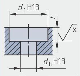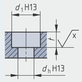 | Gewinde- größe d | Durch- gangs- loch dh mittel | Zylinder- senkung d1 | Tiefe der Senkung t |