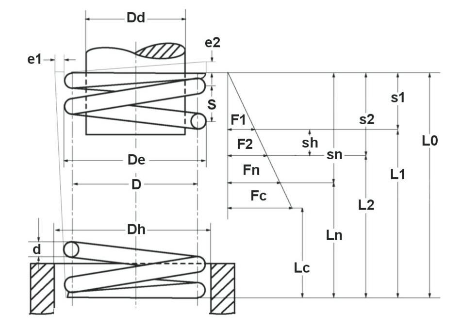 ungespannten Länge und den federnden Windungen der Feder. Die Werte gelten