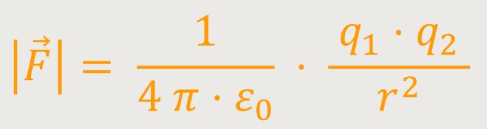 Die Kraftwirkung zwischen geladenen Körpern, die klein sind gegenüber ihrem Abstand, beispielsweise Punktladungen, sind einerseits proportional zur Ladung auf den Köpern und proportional zum Reziprok Wert des Abstandsquadrates.
