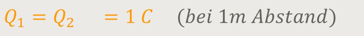 Wenn man nun diesen Wert für die Feldkonstante entsprechend in obige Beziehung einsetzt, ergibt sich für zwei Ladungen im Abstand von 1 Meter: