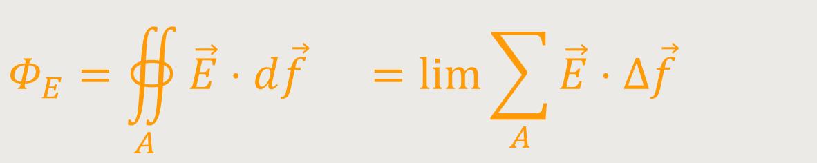 Bei dem elektrischen Fluss ist es allerdings immer wichtig zu charakterisieren, durch welche geschlossene Fläche dieser Fluss tritt. Dieses ΦE ist der gesamte elektrische Fluss des Feldes der Ladungswolke durch eine geschlossene Oberfläche hindurch.