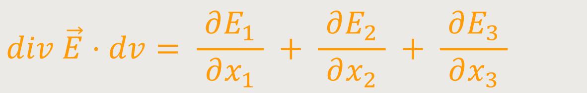 Das Integral über ein Volumen von einer Größe „Divergenz”, ist gleich dem Flächenintergral über den Rand des betrachteten Volumens: