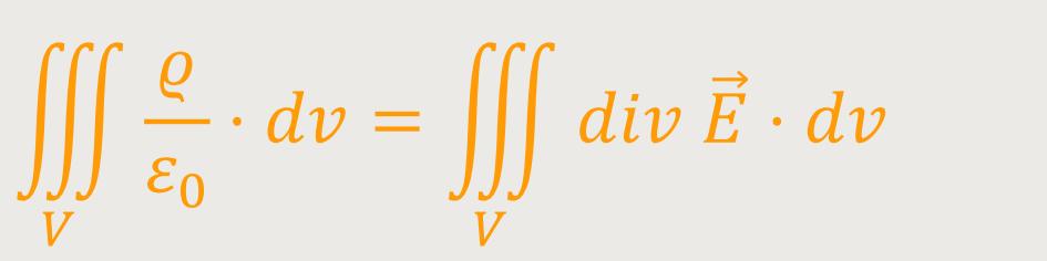 Wenn man jetzt das Volumenintegral mittels des Gauß'schen Integralsatzes umformt, ergibt sich für den elektrischen Fluss: