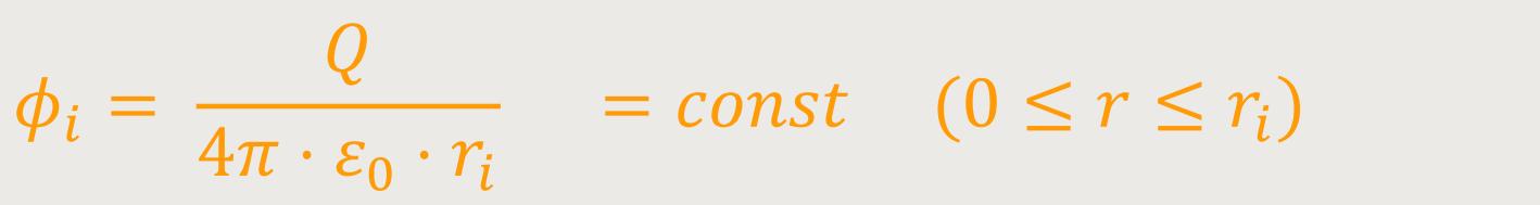 Zur Berechnung benötigt man zunächst beide Potentiale. Das Potential ϕi der inneren Kugel stellt sich in Anlehnung an die Betrachtung der Hohlkugel wie folgt dar: