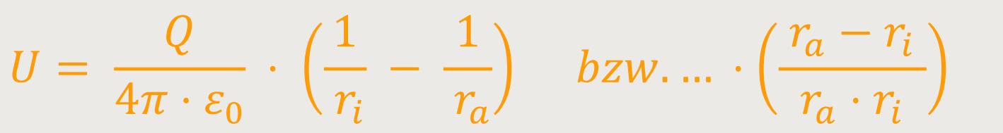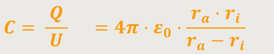 Also, sind die zwei Radien bekannt, lässt sich damit die Kapazität des Kugelkondensators ausrechnen.