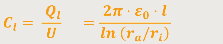 Zylinderkondensatoren mit einer Innen- und Außenelektrode werden in der Praxis sehr vielseitig verwendet. Diese Gleichung eignet sich auch für die Berechnung der Kapazität einer Koaxialleitung mit einer definierten Länge l.