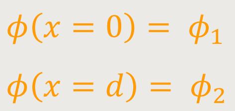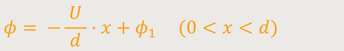 Dadurch kommt es zu einer linearen Abhängigkeit des Potentials von x, wobei a und b Konstanten sind. Allerdings sind diese Konstanten noch nicht bekannt. Da jedoch zwei Randbedingungen vorgegeben wurden, werden die Konstanten nachfolgend so gewählt, dass diese Bedingungen richtig erfüllt sind. Wir betrachten also ein Randwertproblem.