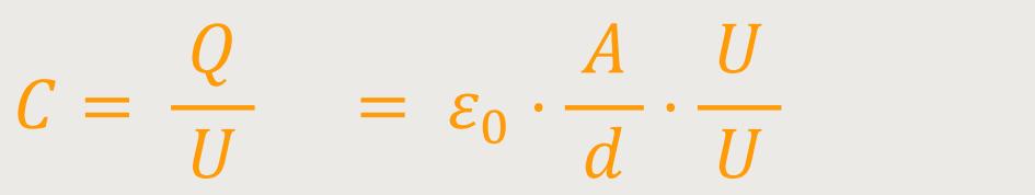 Wenn man das entsprechend in die Gleichung für die Kapazität einsetzt, ergibt sich für den Plattenkondensator: