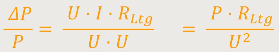 Worauf es jetzt ankommt, ist nicht das ΔP , sondern wie viel der relative Verlust beträgt. Das bedeutet, wie viel pro Gesamtleistung P geht verloren: