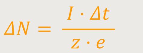 Zusätzlich möchte man eine wohldefinierte Ionenlösung haben. Entweder ein Natriumchlorid, Bleiazetat oder Silbernitrat usw., denn erst dann lässt sich bestimmen, wie groß der Wert z sein wird. Im Laufe einer Elektrolyse werden eine bestimmte Anzahl von Ionen ΔN abgeschieden. Diese Abscheidung hat einiges zur Folge. Einerseits bedeutet es einen Massentransport: