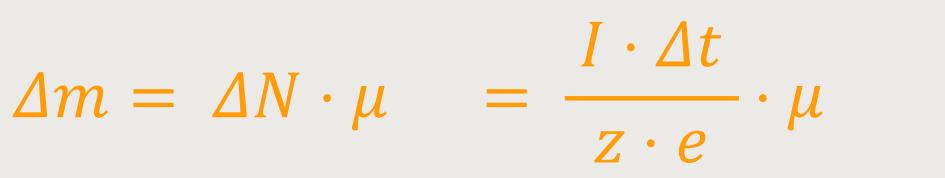 Vorausgesetzt natürlich, dass der Strom gleichmäßig fließt. Und daraus kann man die abgeschiedene Masse bestimmen: