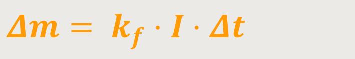 Experimentell lässt sich die Stromstärke I bestimmen und auch die Zeit Δt messen. Die anderen Werte fasst man zunächst in die Konstante kf zusammen. Daraus ergibt sich dann für den Massentransport: