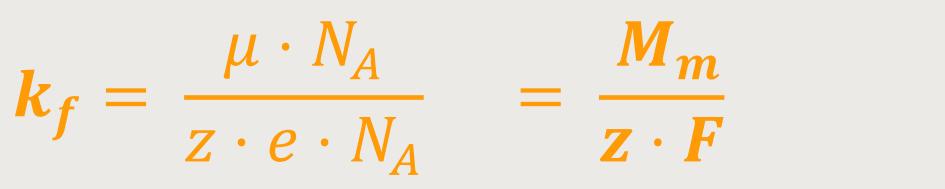Die abgeschiedene Masse ist somit proportional zur Stärke des fließenden Stroms und proportional zur verstrichenen Zeit. Und die Proportionalitätskonstante kf kann man ablesen. Diese Konstante ist zunächst ein empirisch ermittelter Wert, und entspricht dann:
