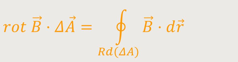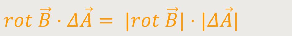 Wir möchten den Stokes'schen Satz noch einmal anwenden, aber diesmal für eine kleine Fläche ΔA. Wenn eine Fläche klein genug gewählt wird, sodass sich das Vektorfeld nicht mehr gravierend ändert, dann ist die Funktion relativ konstant. Und dann lässt sich diese Fläche vor das Integral setzen und man erhält damit: