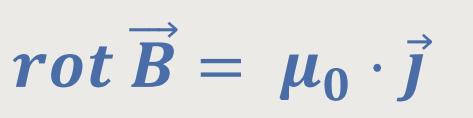 Ein Vergleich mit der Elektrostatik zeigt, dass aus der Divergenz die Rotation wird, und aus der Ladungsdichte wird die Stromdichte. Mit dieser Gleichung wird das magnetische Kraftfeld in Anwesenheit von Strömen beschrieben.