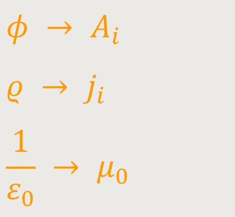 Wenn man diese drei Komponenten entsprechend ersetzt, kann man einfach die Lösung der Poisson-Gleichung aus der Elektrostatik in die Magnetostatik übertragen. Denn das sind strukturell gesehen die gleichen Beziehungen, und daher auch die Lösungen entsprechend.