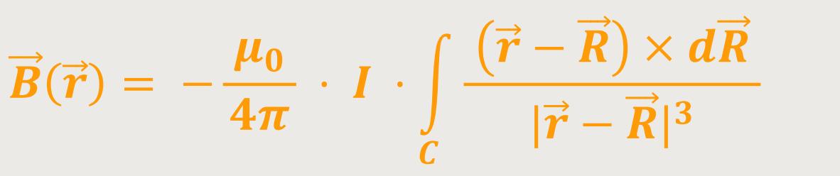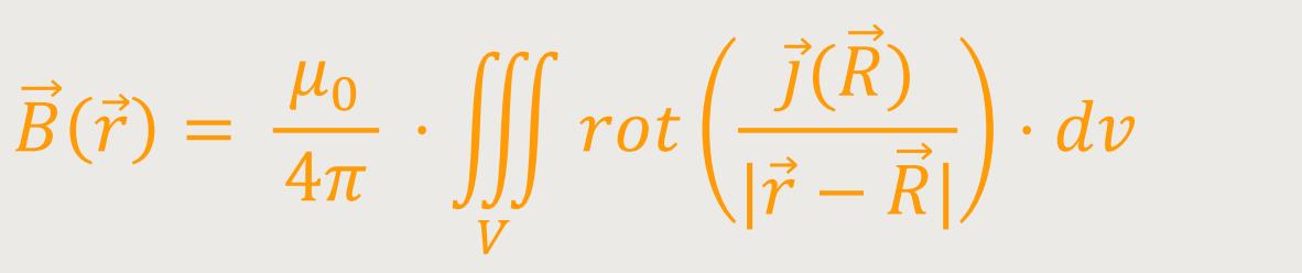 Hierzu gibt es das sogenannte „Biot-Savart-Gesetz”, welches es einem ermöglicht, bei beliebig geformten dünnen Stromleitern, die zugehörigen magnetischen Felder zu ermitteln. Um auf den grundsätzlichen Lösungsansatz zu kommen, ist es wieder notwendig, zuvor einen Potentialansatz zu machen. Hierbei geht es aber nicht um die potentielle Energie. Man erhält jetzt vielmehr eine vektorielle Größe, die als „Vektorpotential” bezeichnet wird.