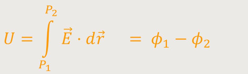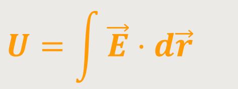 Und wenn man einen solchen Potentialansatz macht, lässt sich die Spannung, die ja wie nachfolgend definiert ist, auch als Potentialdifferenz darstellen: